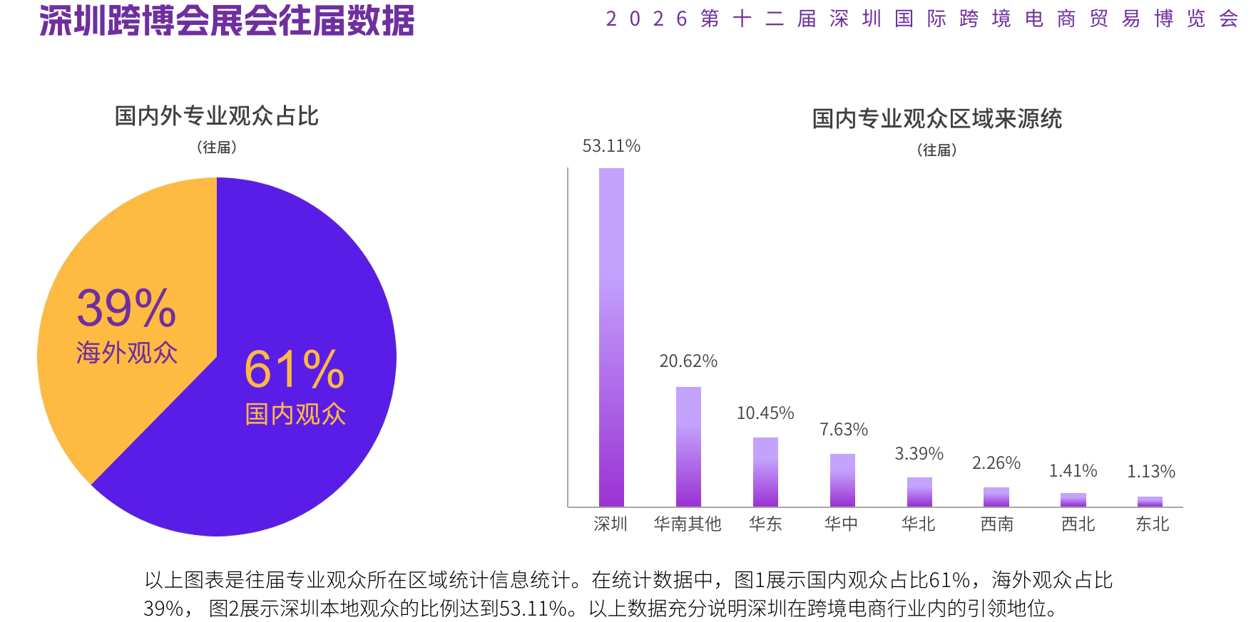2026 第十二届深圳国际跨境电商贸易博览会暨2026深圳外贸进出口交易会 ,在 跨境电商领域极具影响力 。它由深圳市跨境电子商务协会主办 ,得到深圳市政府大力 支持 。本届展会展出面积60000平, 同期举办3万平展出规模的义乌外贸展 。自创办以 来, 累计吸引众多国家和地区的参展商与采购商参与 ,推动行业不断发展 。展会聚焦 跨境电商全产业链, 涵盖跨境支付结算 、智能物流仓储 、海外仓网络建设等核心板块, 还设有 RCEP 专题展区与新兴市场对接专区, 助力企业开拓多元国际市场 。现场汇聚 海量优质商品 ,从 3C 电子 、智能家居, 到时尚服饰 、美妆个护等应有尽有 。 展会同期还将举办第九届616全球跨境电商节 、深圳外贸采购接会等超 40 场高端 活动, 我们还会邀请贸易专家 、亚马逊等头部平台负责人及知名企业高管, 围绕 AI 应 用 、绿色供应链等热点深入探讨 。此外, 展会还将通过全媒体矩阵进行宣传 ,扩大影 响力, 并开展 “跨境电商100人 ” 评选等特色活动 。616 全球跨境电商节与深圳国际 跨境电商贸易博览会强强联合, 为全球跨境电商从业者打造交流合作平台 ,推动中国 跨境电商生态持续优化升级